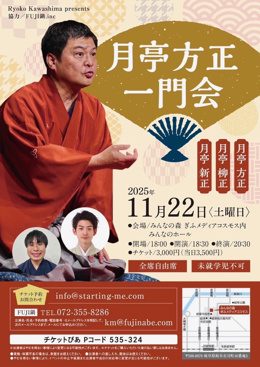 この度ご縁があり「月亭方正一門会」の協賛をさせていただくことになりました。
