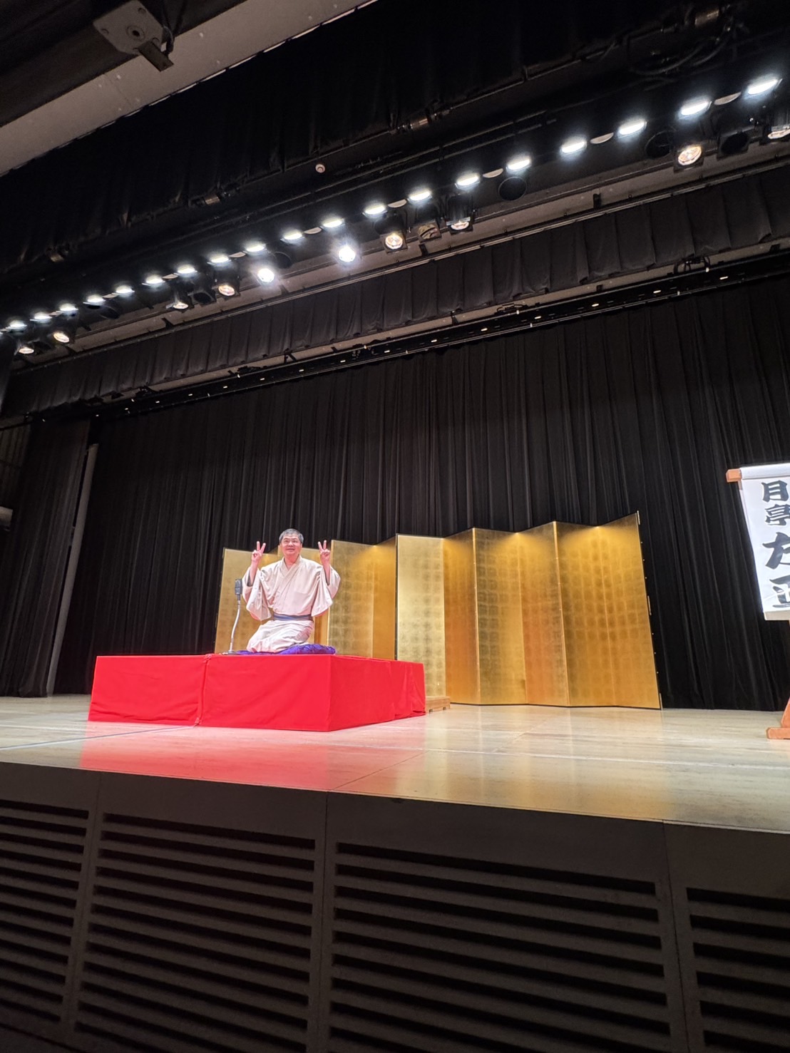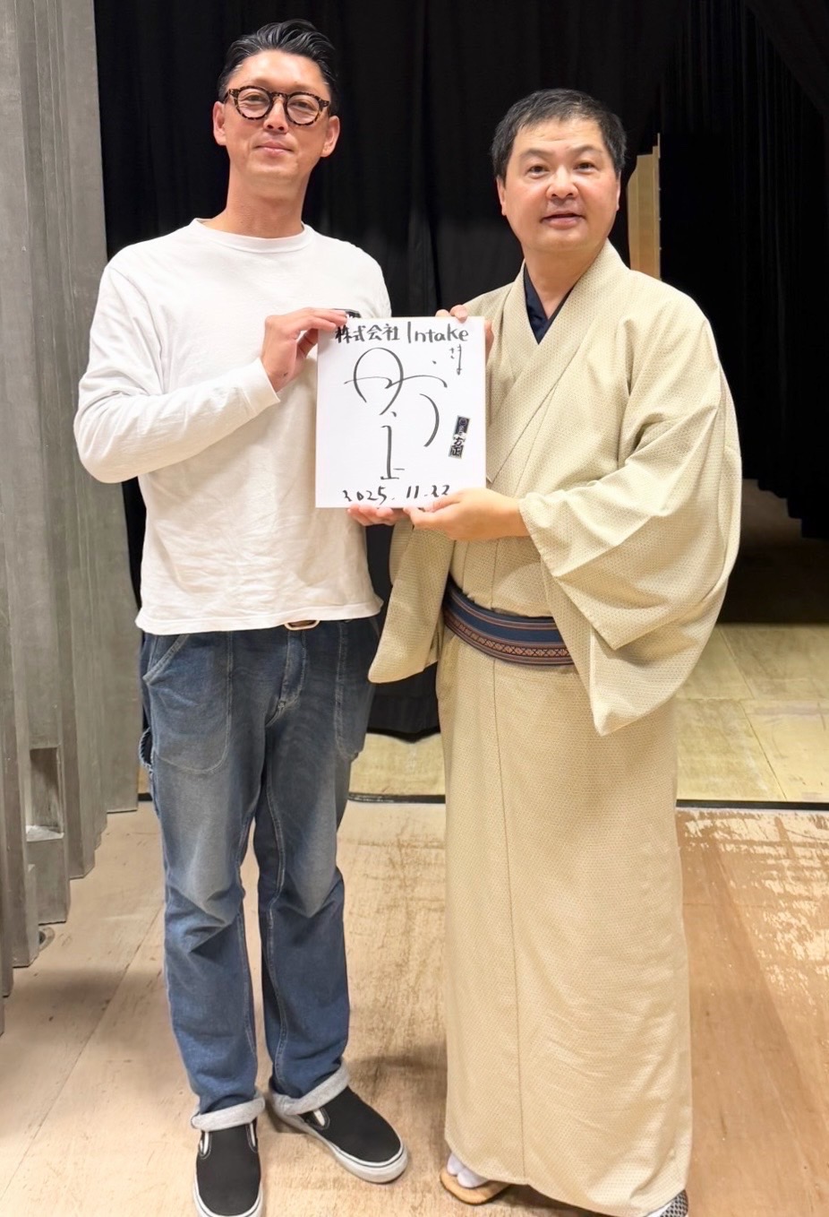 2025年11月22日、みんなの森ぎふメディアコスモスにて「月亭方正一門会」による落語を聴いてきました。この度「月亭方正一門会」とご縁があり、会場ではゴールドスポンサーとして㈱Intakeを読み上げていただき、来場の皆様にチラシを配布させていただきました。また、最前列の席を10席用意、さらには楽屋にも入れてもらい、サイン色紙を頂戴し一緒に写真撮影もしていただきました!